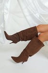 Dotées d’un talon de 8 cm, elles offrent une hauteur idéale pour sublimer la silhouette tout en garantissant un excellent confort au quotidien. Leur design ample et structuré apporte du caractère à chaque tenue, faisant de ces bottes une véritable signature mode.