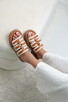 Alliance parfaite entre confort et élégance, les sandales Tresses Solaires insufflent un vent de soleil à vos looks d’été. Leur design entrelacé, aux teintes camel et ivoire, évoque les journées chaudes et les balades les pieds dans le sable.