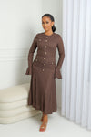 Une pièce majestueuse qui allie raffinement et confort. La robe Impériale Maille se distingue par sa coupe structurée et sa maille texturée qui épouse la silhouette tout en offrant une allure sophistiquée. Ses boutons dorés apportent une touche d’éclat, tandis que les manches légèrement évasées et le tombé fluide subliment chaque mouvement. Un modèle idéal pour affirmer son élégance en toute occasion.