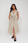 Adoptez un style chic et moderne avec la robe Trench Intemporel, une pièce élégante inspirée du célèbre trench revisité en version robe. Sa coupe structurée et sa teinte beige classique en font un indispensable du dressing, parfait pour une allure à la fois sophistiquée et tendance.