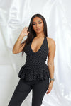 Féminin et glamour, le Top Pin-Up sublime la silhouette avec son décolleté plongeant et sa coupe halter qui met en valeur les épaules. Son esprit rétro revisité apporte une touche chic et séduisante, parfaite pour un look affirmé.